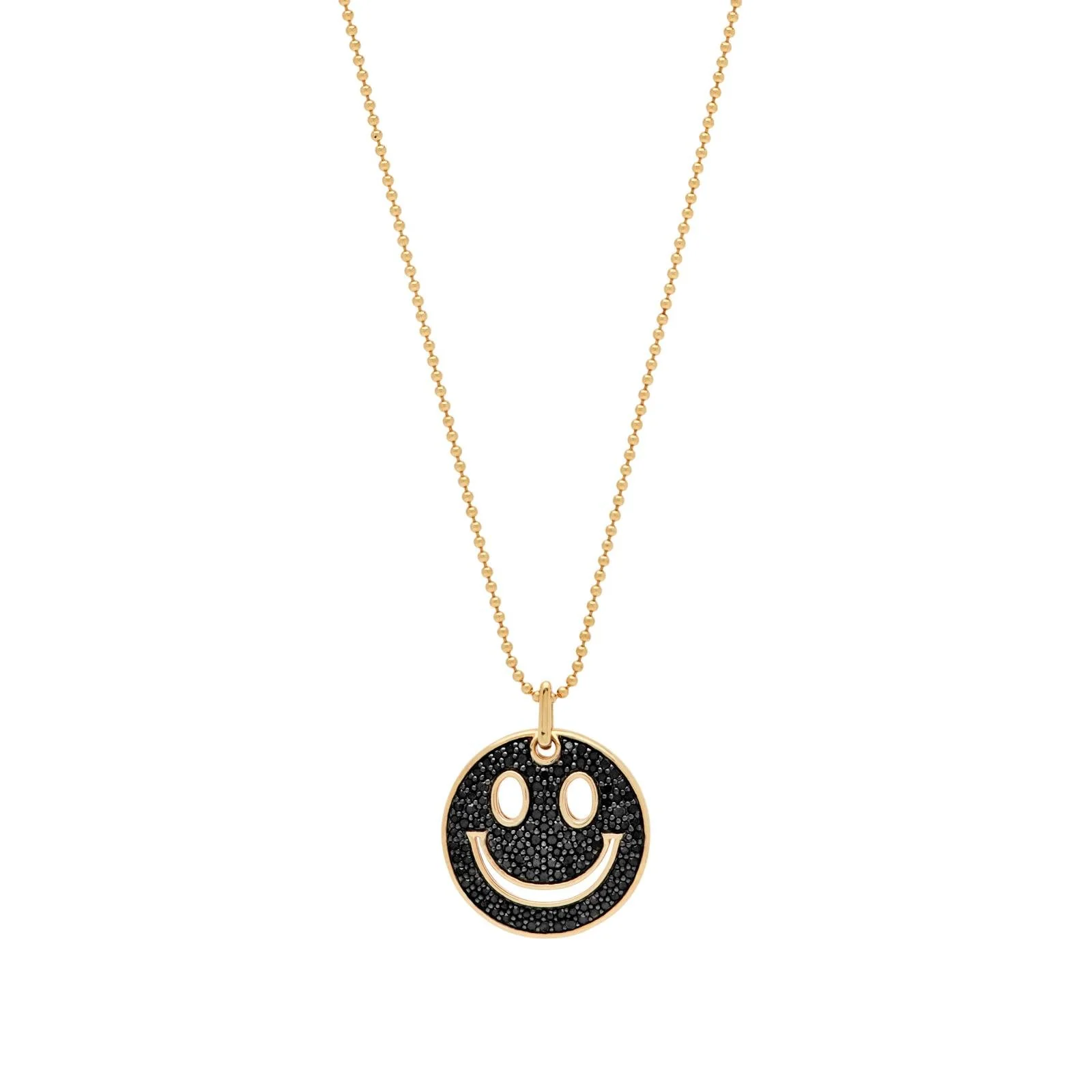 This stunning piece from the Venetian Stories collection takes the classic smiley face and elevates it with a luxurious touch. Crafted in 14k gold, the pendant is set with a mesmerizing array of black diamonds, creating a striking contrast that is both playful and sophisticated. The delicate gold chain adds a subtle elegance, making this necklace perfect for layering or wearing on its own as a bold statement. Whether paired with casual attire or evening wear, this necklace offers a unique fusion of fun and high fashion.